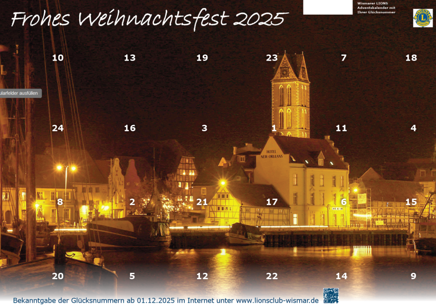 Der LIONS Club Wismar und der LIONS Förderverein Wismar e.V. wünscht Ihnen ein Frohes Weihnachtsfest.